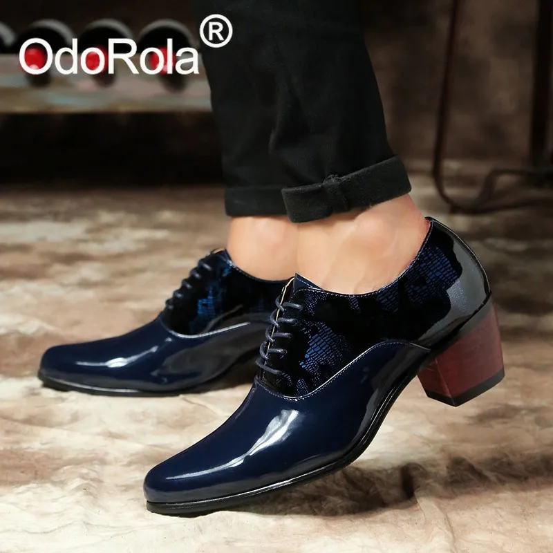 Man Leather Shoes Formal Business Shoes Pointed Toe Man Dress Shoes Glossy Wedding Shoes High Heel